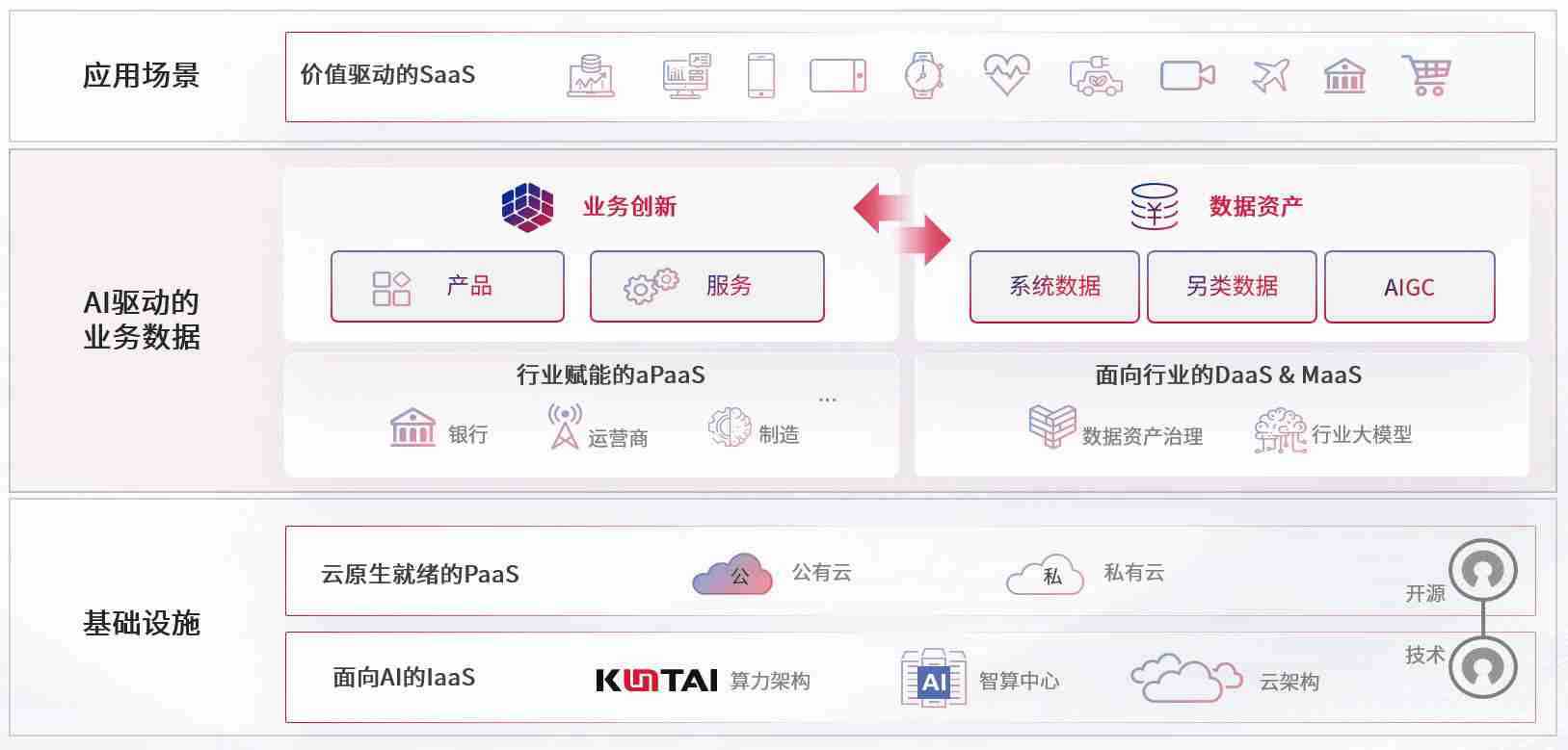 数字时代,,围绕企业数字化转型的关键要素,,VSport数码开创性的提出数云融合战略和技术体系框架,,,,着力在云原生、、数字原生、、AI原生和信创产业上架构产品和服务能力,,,为处在不同数字化转型阶段的快消零售、、、汽车、、、金融、、、、医疗、、、、政企、、教育、、、、运营商等行业客户提供泛在的敏捷IT能力和融合的数据驱动能力,,,构建跨界融合创新的数字业务场景和新业务模式,,,助力企业级客户建立面向未来的核心能力和竞争优势,,全面推动社会的数字化、、智能化转型升级。。。。